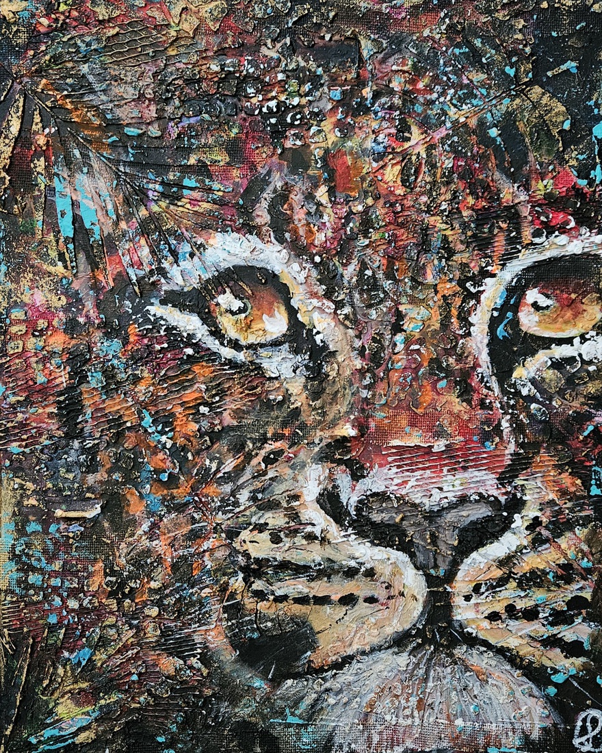 Luipaard mixed media gemaakt met acrylinkt op veel reliëf.